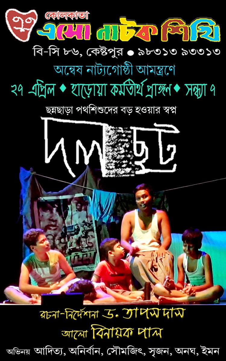 Script, Music, Light, Set & Direction Dr. Tapas Das Light Control Binayak Pal Cast Shibu Aditya Bhattacharjee Kanto Anirban Das Totan Soumajit Kundu Satya Anag Akhre Hari Srijan Seikh Parvej Iman Saha